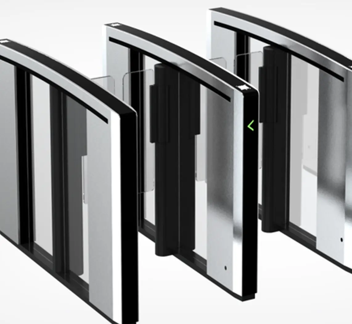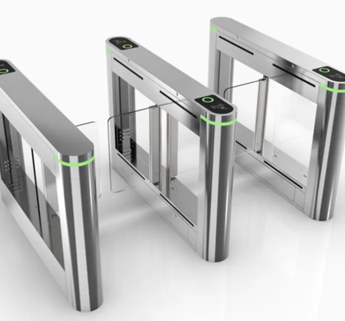 A commercial-grade swing barrier turnstile equipped with the latest features to streamline operational flow.