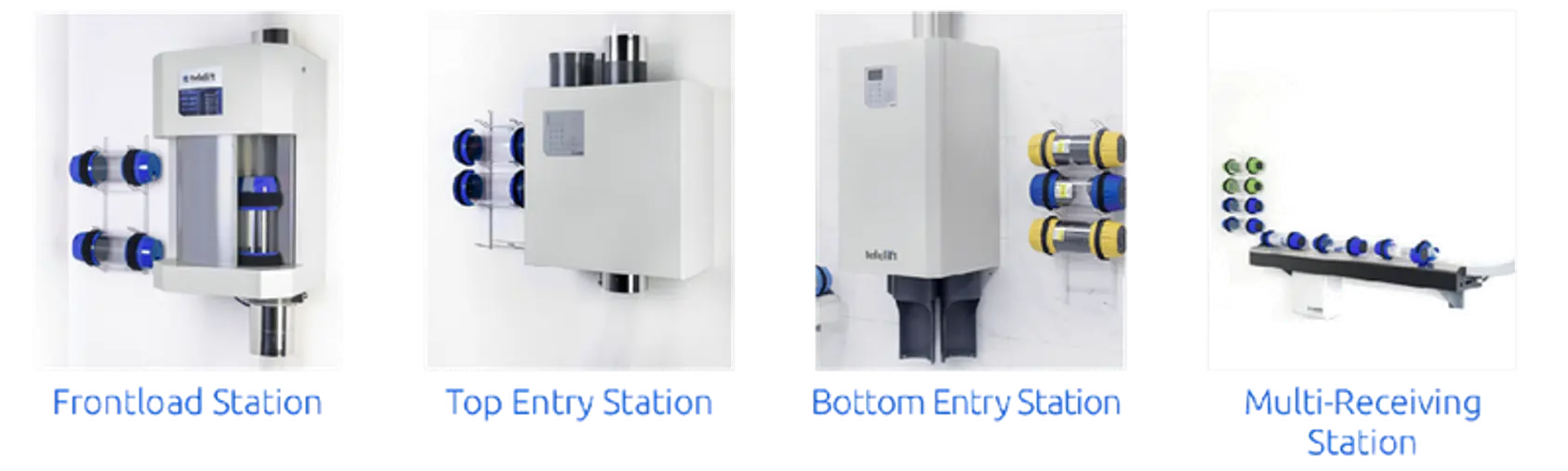 UniTube by Telelift is a computer-based automated delivery system that operates using air pressure. With this system, specialized carriers are transported through a hermetically sealed network of pipes.